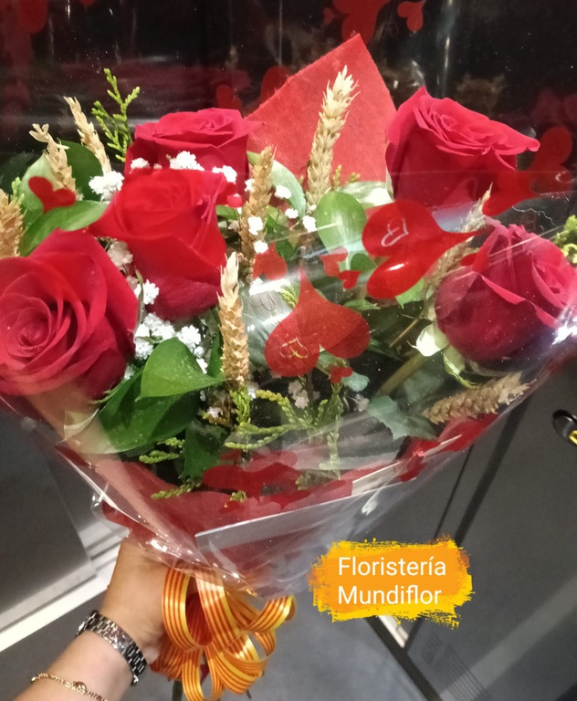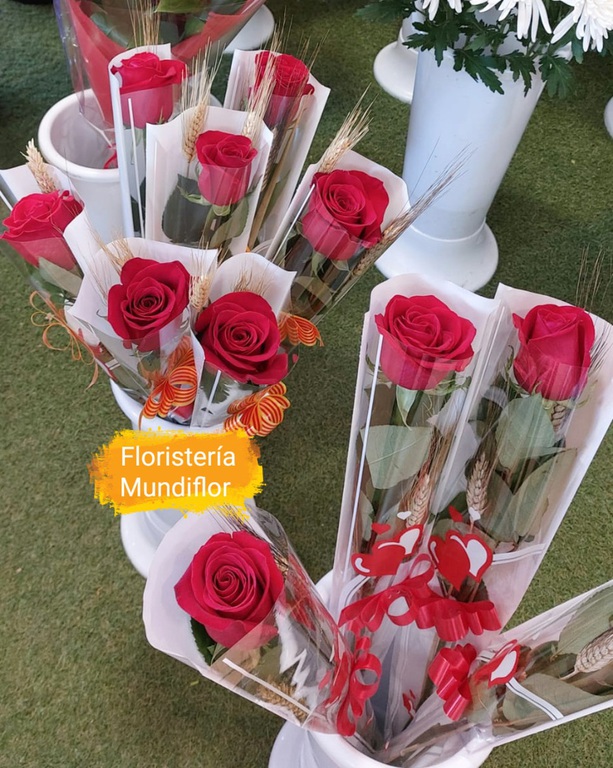 Es costumbre el día 23 de Abril, regalar un libro y una rosa, una fecha cada vez más marcada, puedes regalar una rosa o una composición de ramo de rosas, acompañado de espiga y señera.
